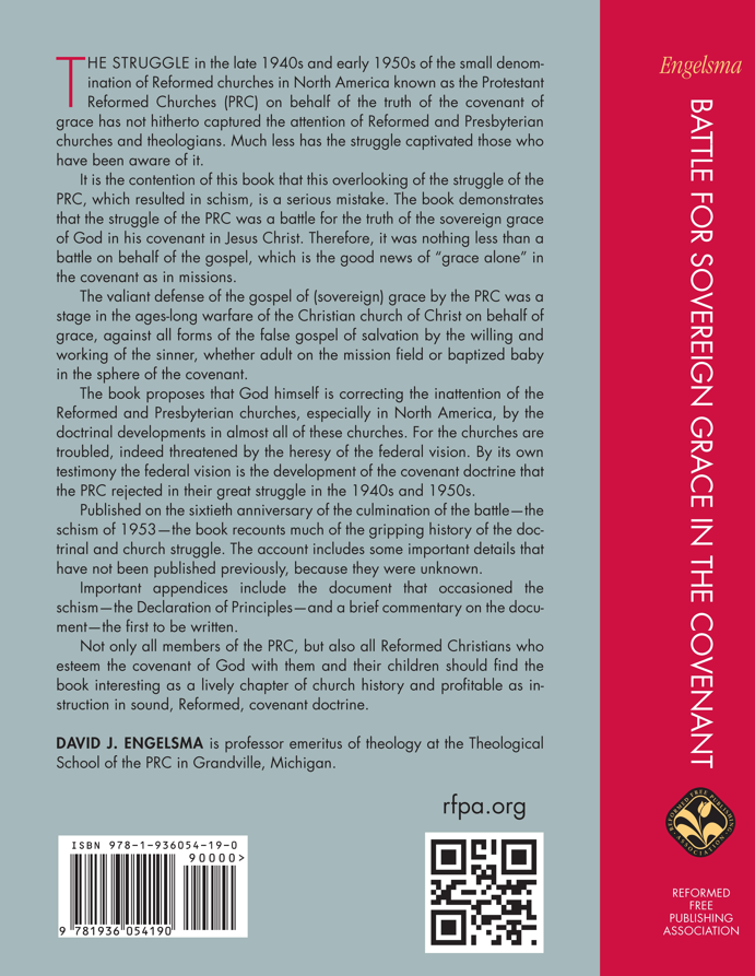 This book recounts much of the gripping history of the schism of 1953 within the Protestant Reformed Churches (PRC), the culmination of the hard-fought battle for sovereign grace in the covenant. The book includes new, important details that have not been previously published and also provides the history of the controversial adoption by the PRCA of the Declaration of Principles, the document that in some ways occasioned the schism of 1953. In the appendices of the book, Engelsma gives a brief, valuable commentary on the Declaration, the first such commentary to be written.