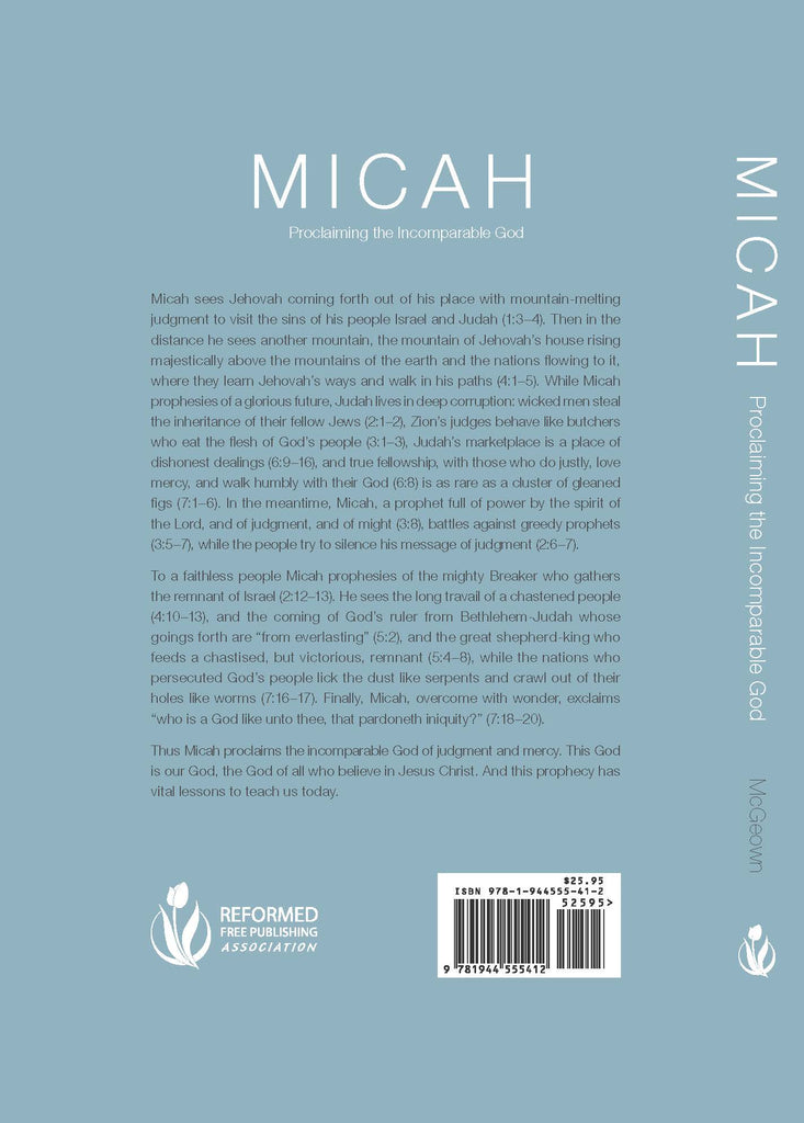 "This commentary on an otherwise fairly obscure Old Testament prophet is a gem. Micah’s name means 'Who is like Jehovah?' hence Rev. McGeown’s title Proclaiming the Incomparable God. The author’s accurate and enlightening exposition of the text grants insights into other parts of Scripture, as he brings his Reformed glasses to bear on the prophecy. An excellent read and, to my mind, unsurpassed commentary on Micah." -Julian Kennedy