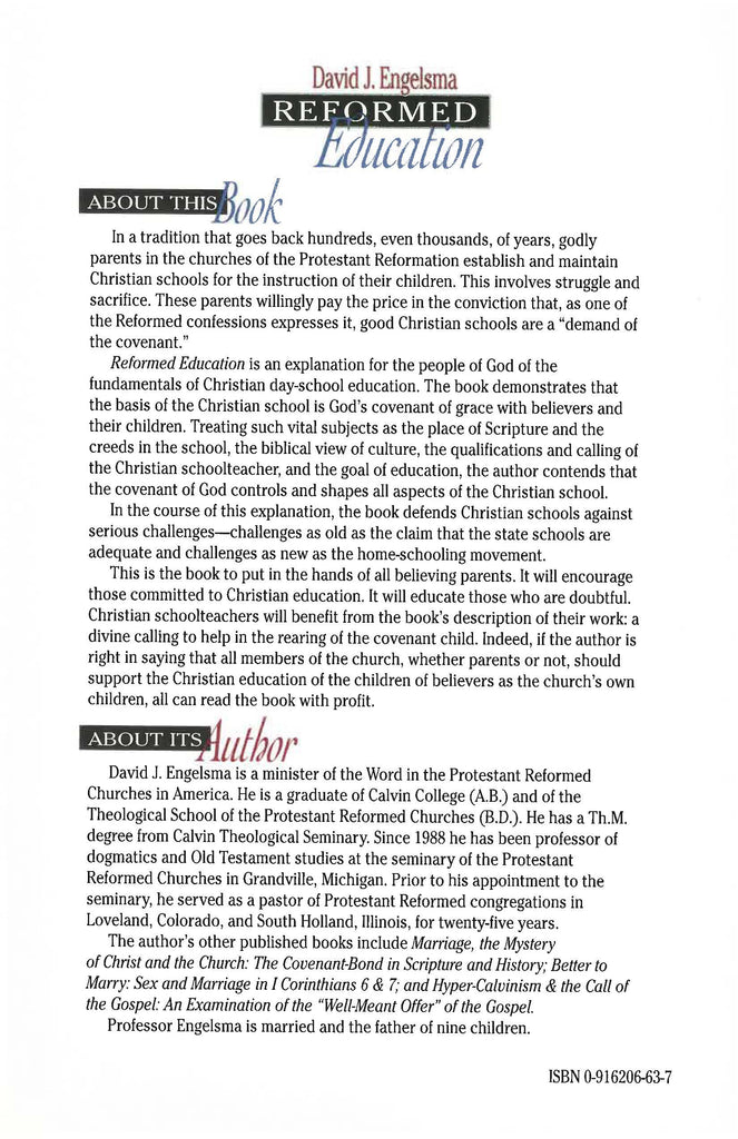 "The Reformed Free Publishing Association has done all Reformed believers a great favor by publishing a revised edition of Reformed Education. This is a book which Reformed parents who seek to rear their children in the fear of the Lord, and Reformed teachers who seek to assist believing parents in this calling will want to read and periodically reread. This book provides encouragement as well as biblical direction to parents, teachers, and all involved in the task of educating the children of believers." - Ron Koole