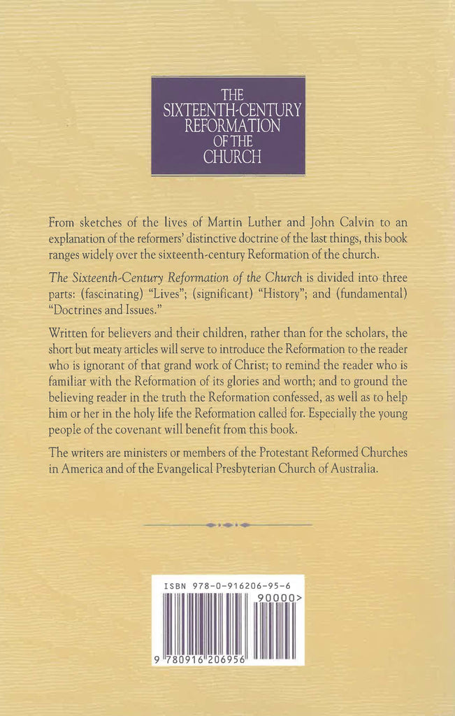 Written for believers and their children, rather than for scholars, the 23 short but meaty articles will serve to introduce the Reformation to the reader who is ignorant of that grand work of Christ; to remind the reader who is familiar with the Reformation of its glories and worth; and to ground the believing reader in the truth of the Reformation confessed, as well as to help him or her in the holy life the Reformation called for. Especially the young people of the covenant will benefit from this book.