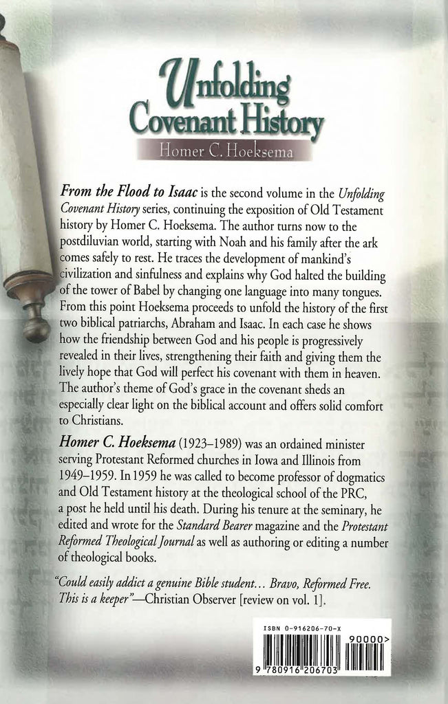 Unfolding Covenant History is a series that includes Old Testament history syllabi written by the late Homer C. Hoeksema, with additional syllabi written by David J. Engelsma, his successor as Professor of Dogmatics and Old Testament at the Protestant Reformed Theological Seminary in Wyoming, Michigan. Recognizing the work's potential for the edification and comfort to all of God's people, the RFPA originally undertook the publication of this series of hardcover volumes under the editorship of Mark H. Hoeksema, son of Homer Hoeksema.